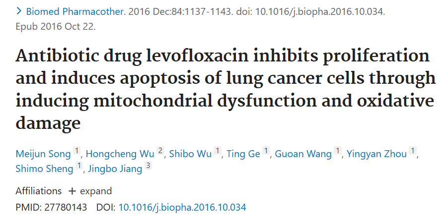 Das Antibiotikum Levofloxacin hemmt die Proliferation und induziert die Apoptose von Lungenkrebszellen durch Induzierung einer mitochondrialen Dysfunktion und oxidativer Schädigung.
